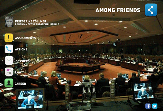 In the middle of the European legislative process and the negotiations on the reform of data protection legislation in Brussels, the cross-media project “Among Friends Interactive” is an invitation to us to join the game for influence, power, ideology and political control.